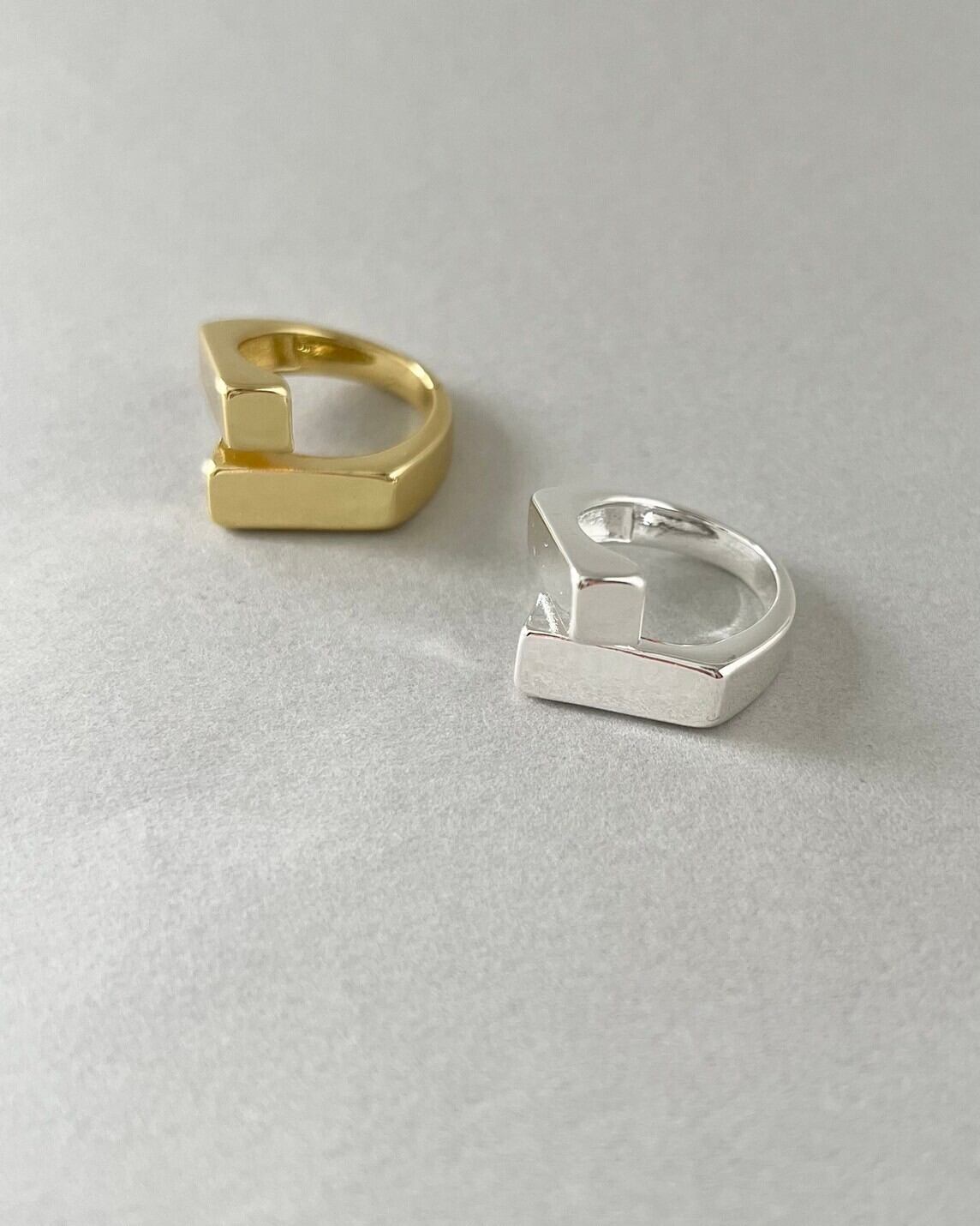 少しゴツゴツしたようなブロックのようなリングは指を細く見せたりアクセントになります。