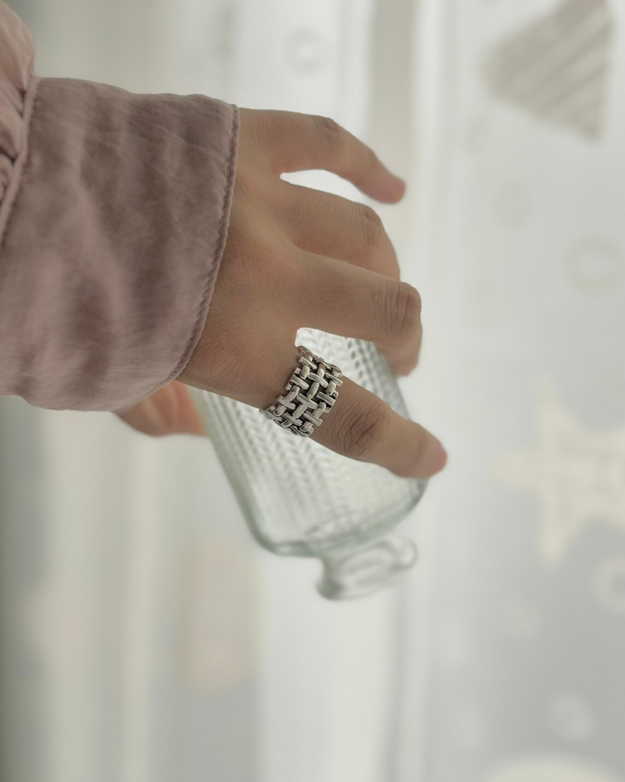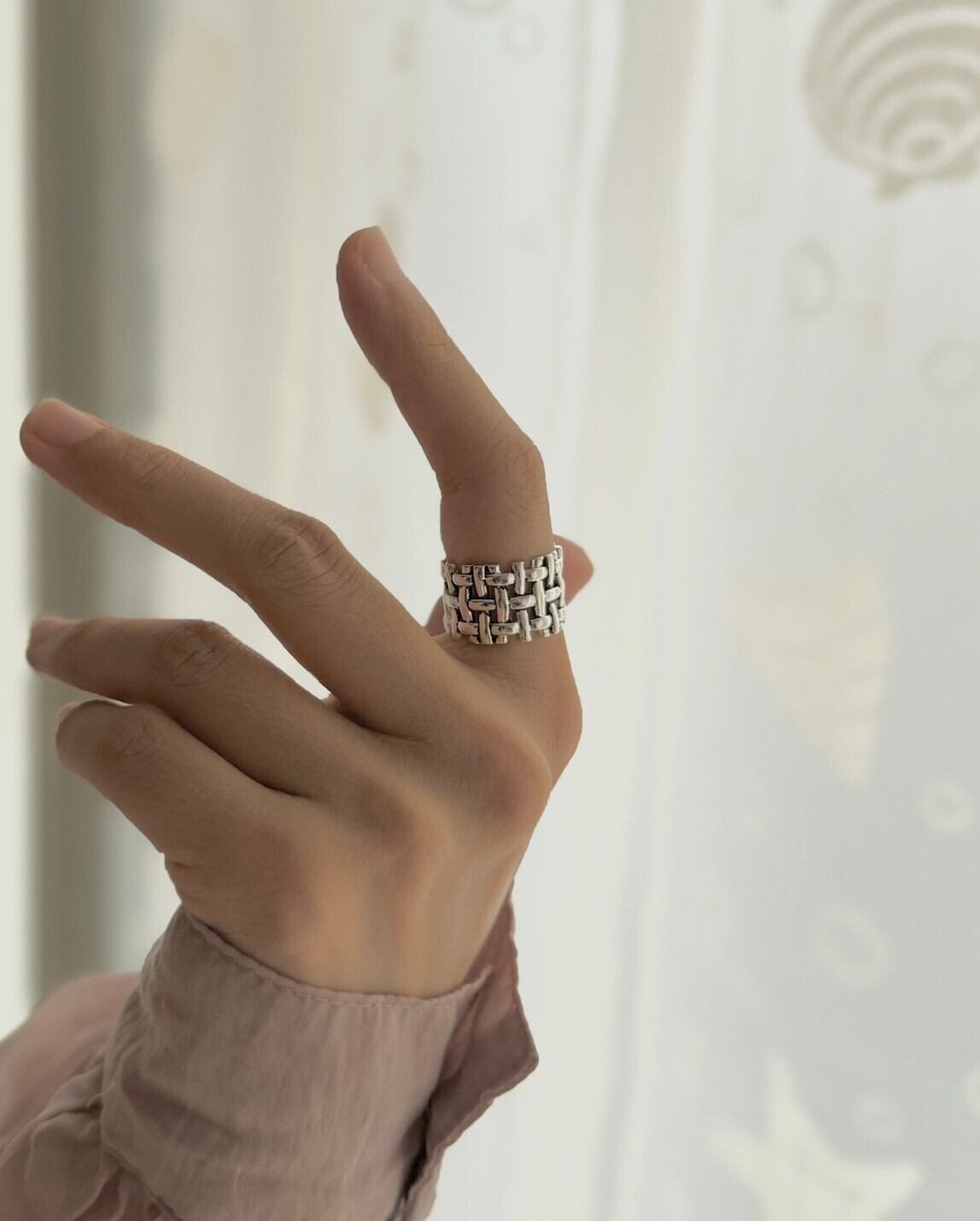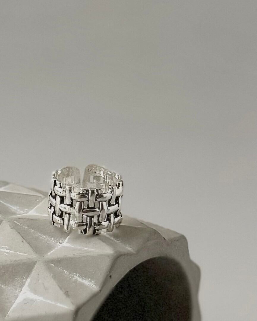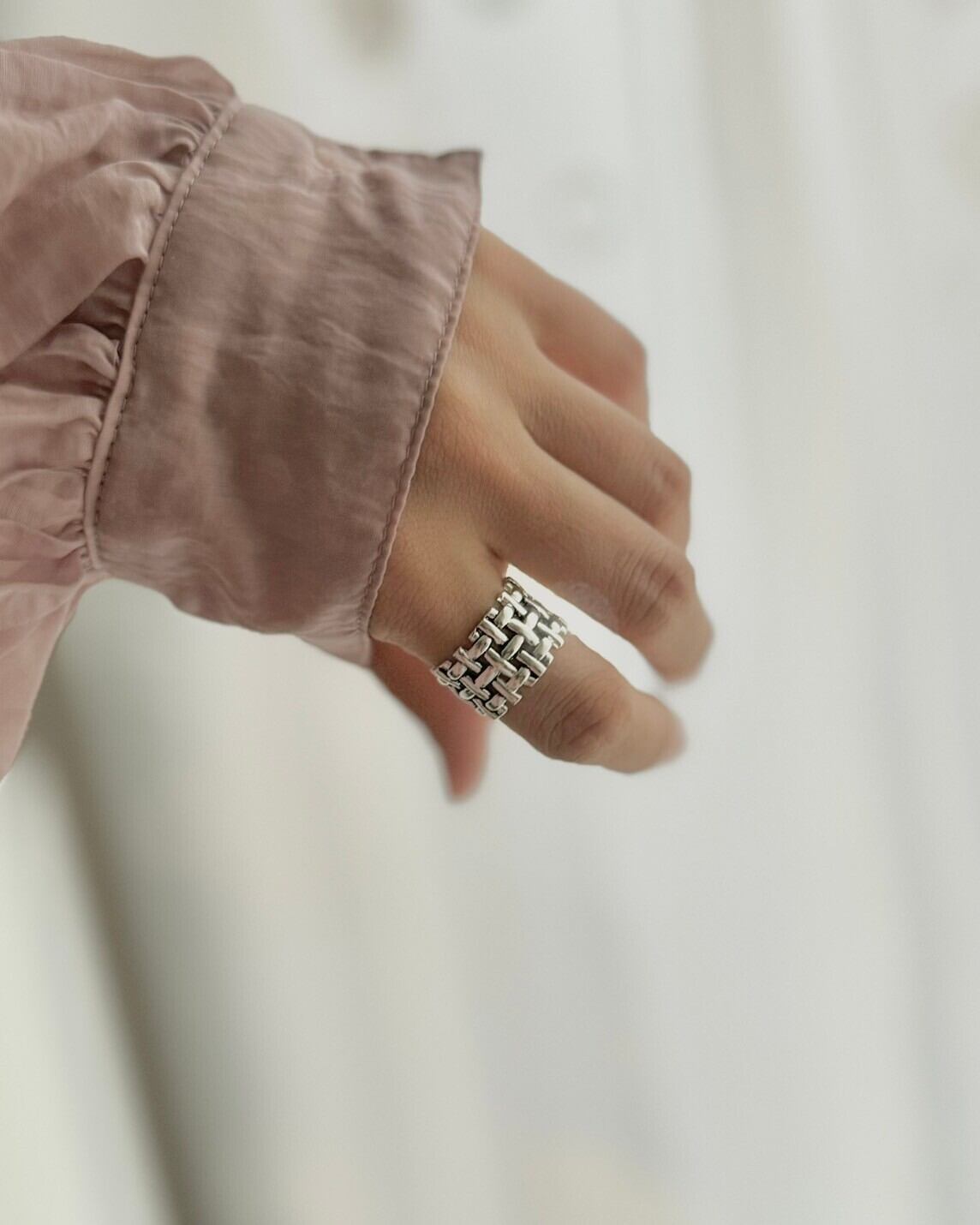 幅の広いリングでありユニークなデザインは一つでも存在感があります。