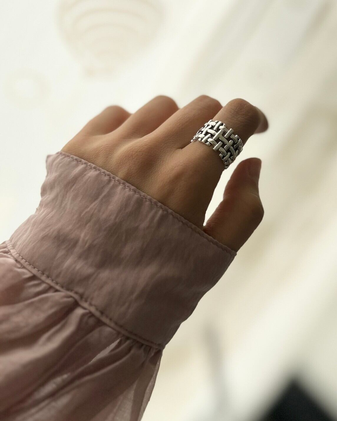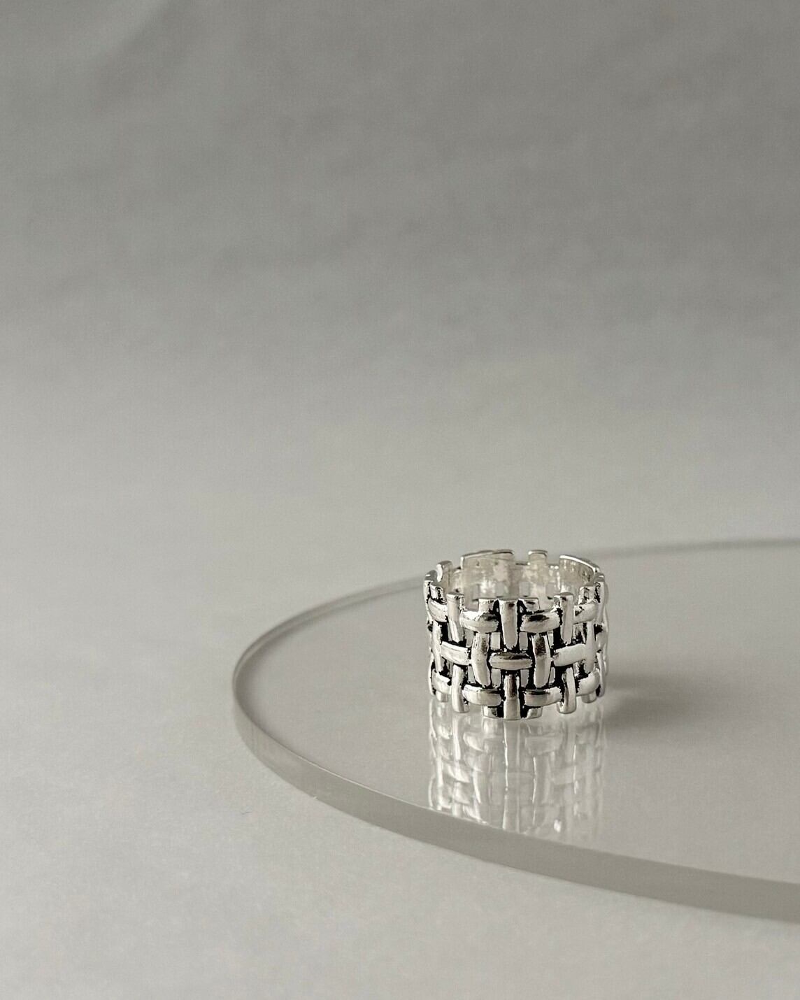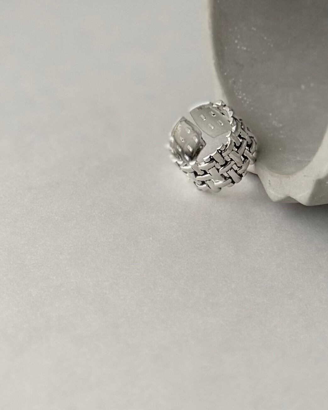 幅の広いリングでありユニークなデザインは一つでも存在感があります。